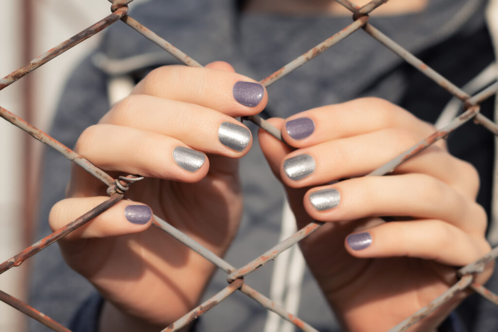 這季最迷人的主角無疑是 Sage Chrome Petals(鼠尾草鉻金屬花瓣),在植感的綠色底色上疊加細緻金屬粉末,讓甲面呈現如絲綢般的流動光澤,這種低對比度的高級感完美契合了現代女性追求的知性美。與之呼應的是延續極致減法哲學的 Soap Nails(肥皂美甲),它捨棄了所有裝飾,轉而追求完美的指緣保養與如 Bubble-bath(泡泡浴) 般的半透明色澤,展現出最純粹的健康質感。